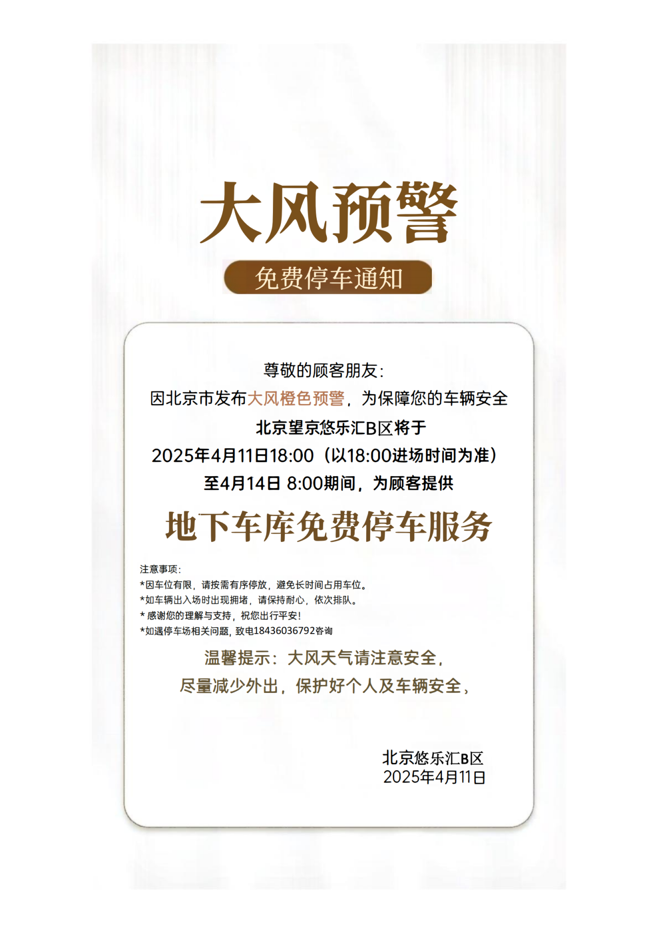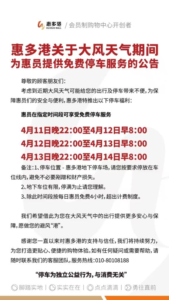 此外,姚家园万象汇、惠多港、望京悠乐汇B区等市集发布公告,提供部分时段的免费泊车劳动。